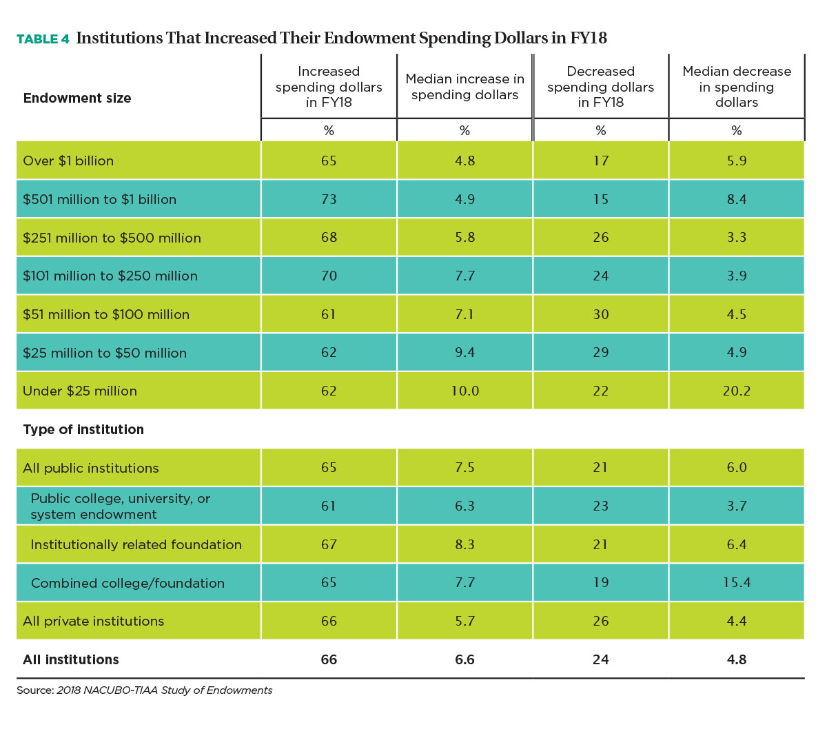These FY18 results are based on the inaugural NACUBO-TIAA Study of Endowments, a landmark research partnership between NACUBO and TIAA. NACUBO and TIAA’s new joint venture ensures and enhances the status of the annual endowment study as the largest, most comprehensive survey of investment management and governance practices at American colleges, universities, and affiliated foundations.
